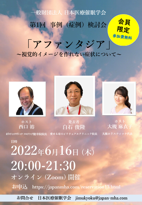 日本医療催眠学会 第1回事例(症例)検討会(会員限定 参加費無料)